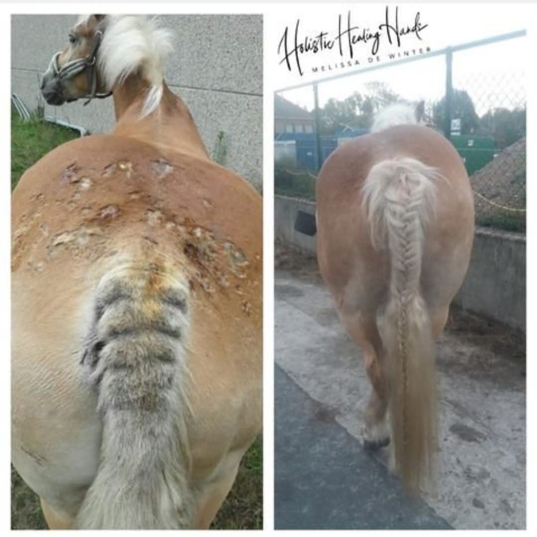 Wat te doen? Binnen ons schuur traject werken we met onze Scabies Horse in combinatie met 100% natuurlijke Wonder olie op basis van Castor.